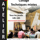 | | Les jeudis de 14h à 16h Atelier hebdomadaire Collage et Techniques mixtes